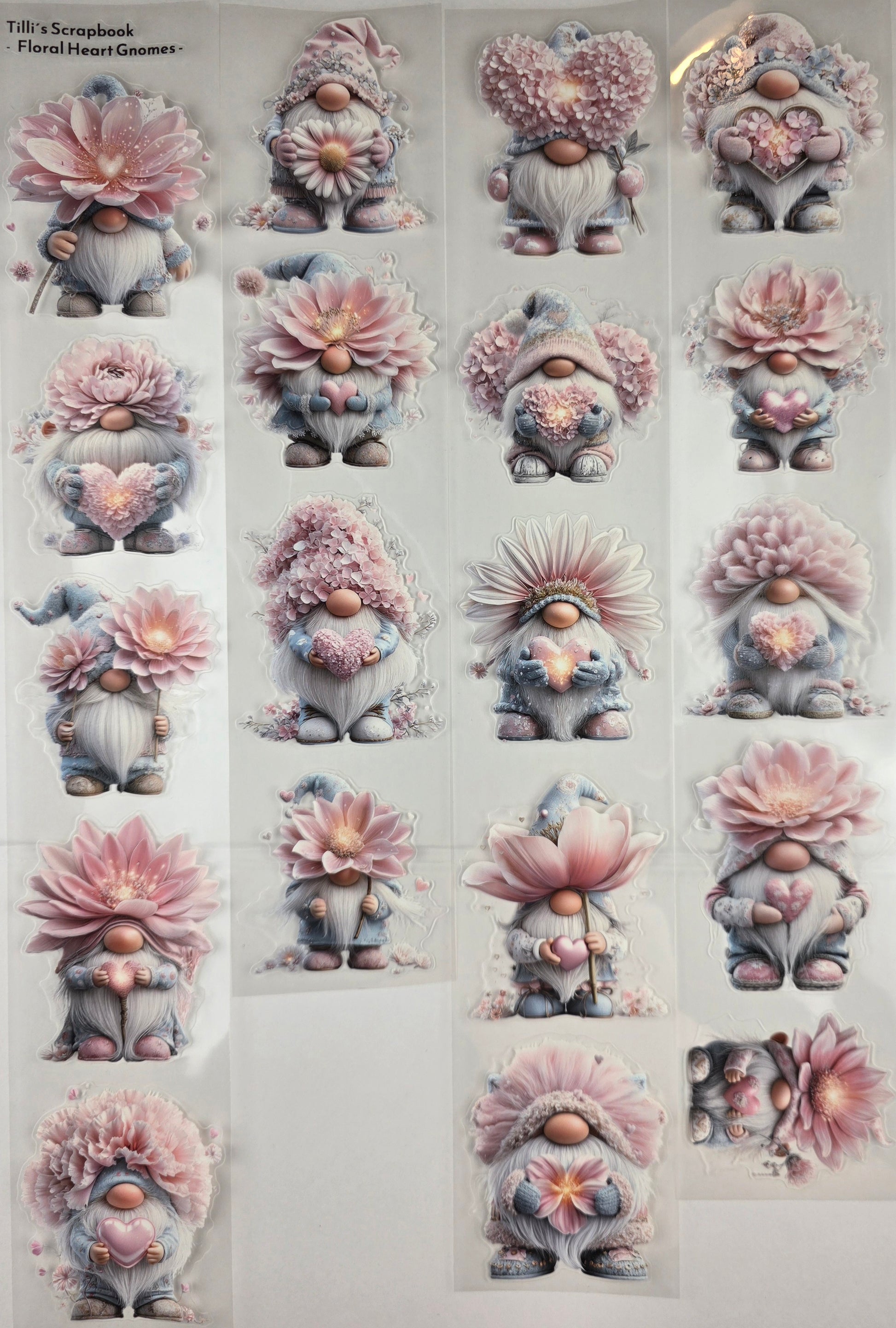 💖PET Tape 3D PRE-Cut Stickerband „Floral Heart Gnomes“ – zauberhaftes Scrapbooking Zubehör mit Herz & Fantasie 🌸✨