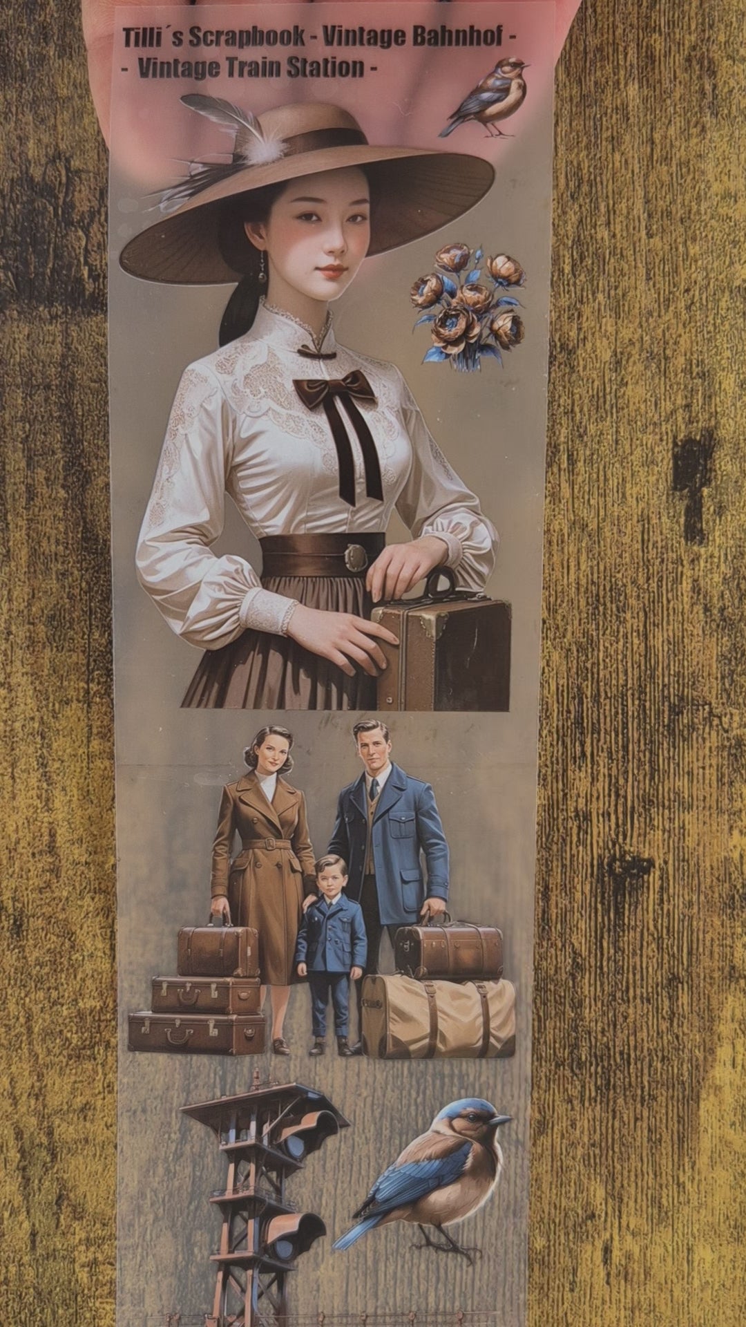 🚂 PET Tape Stickerband „Vintage Bahnhof“ – für Scrapbooking & Journaling ✨