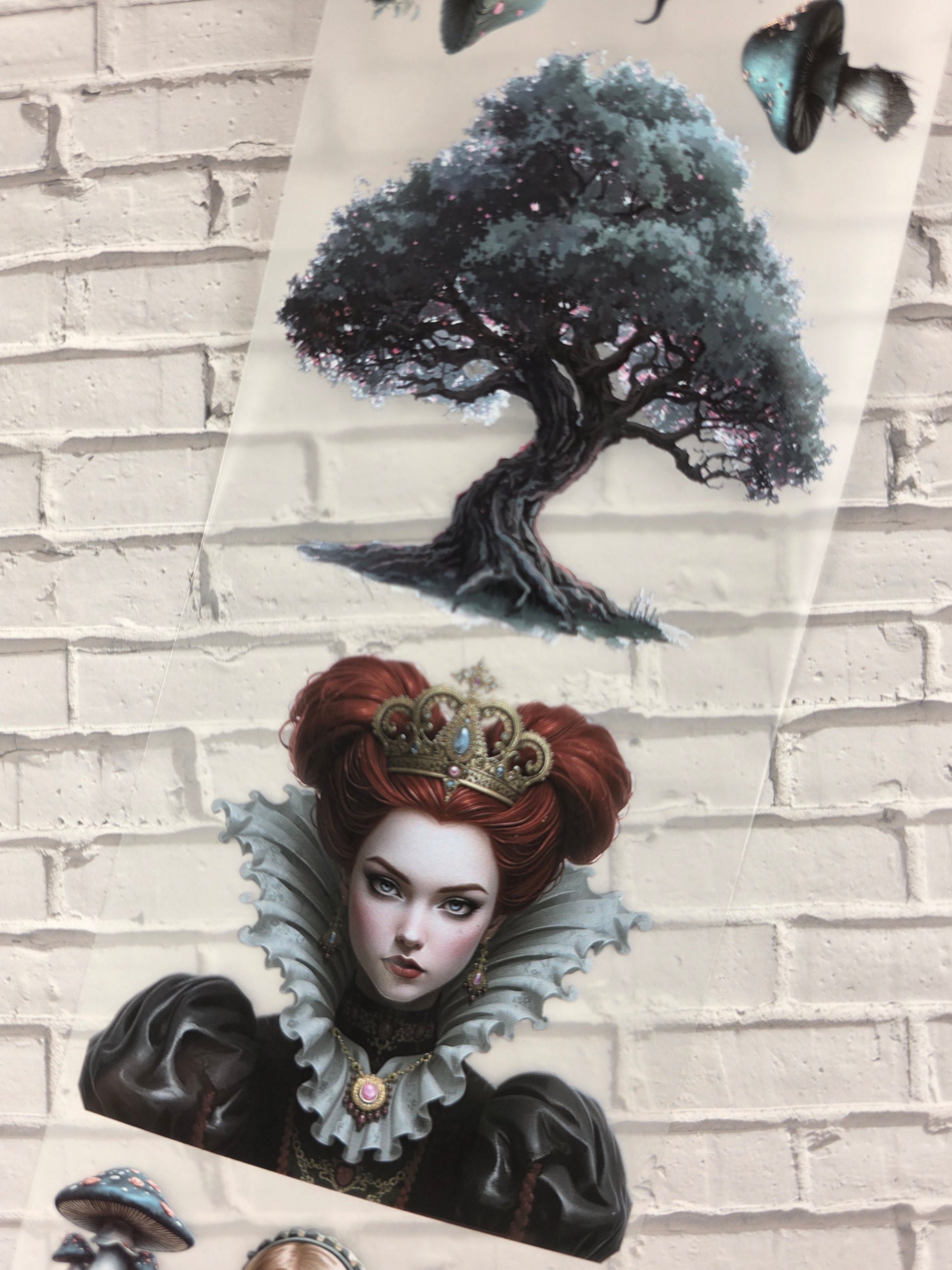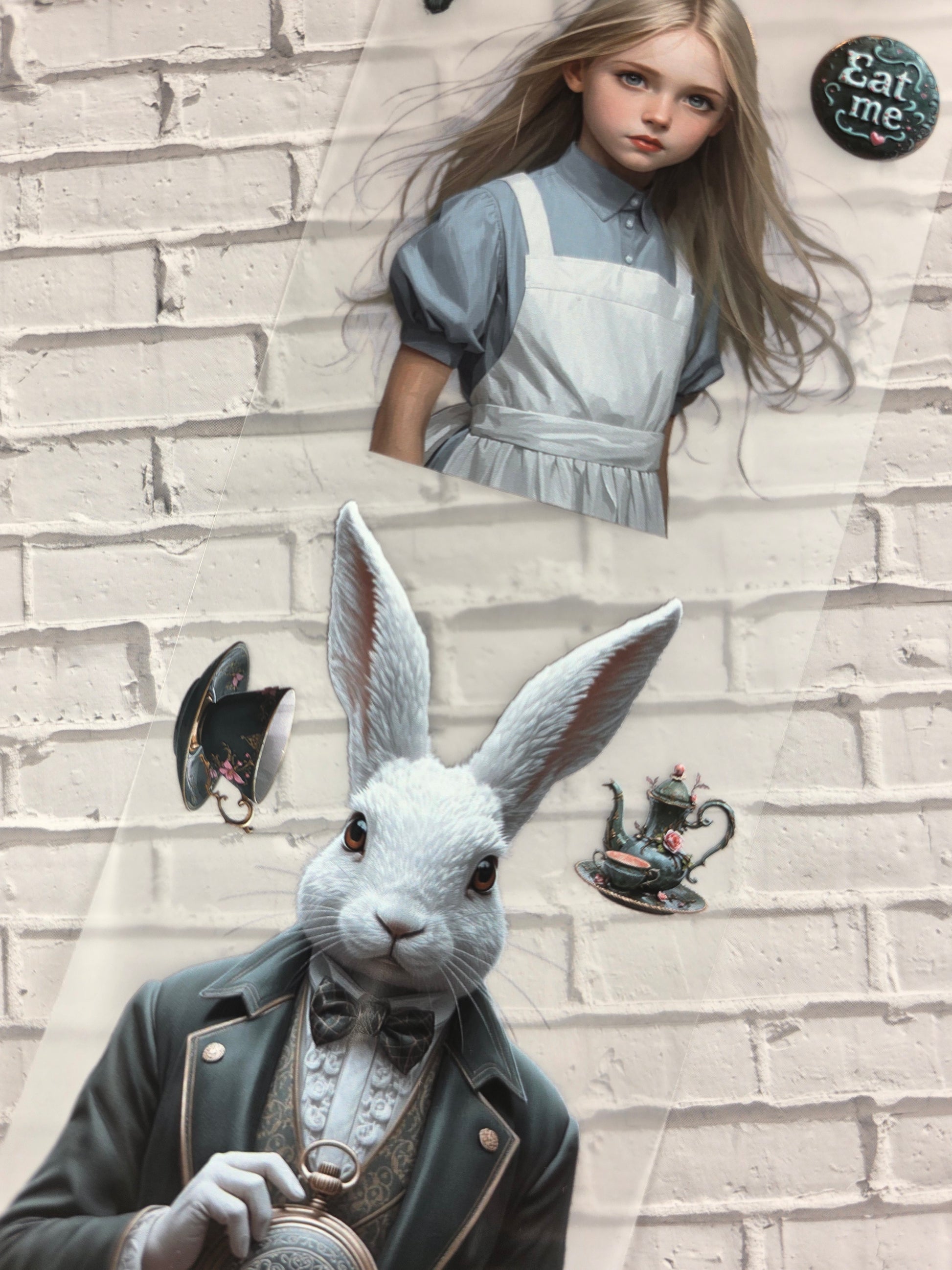 - Design: Wunderland-mit-Alice-Motive (Alice, Hutmacher, Herzkönigin, Teekannen, Spielkarten, magische Elemente)