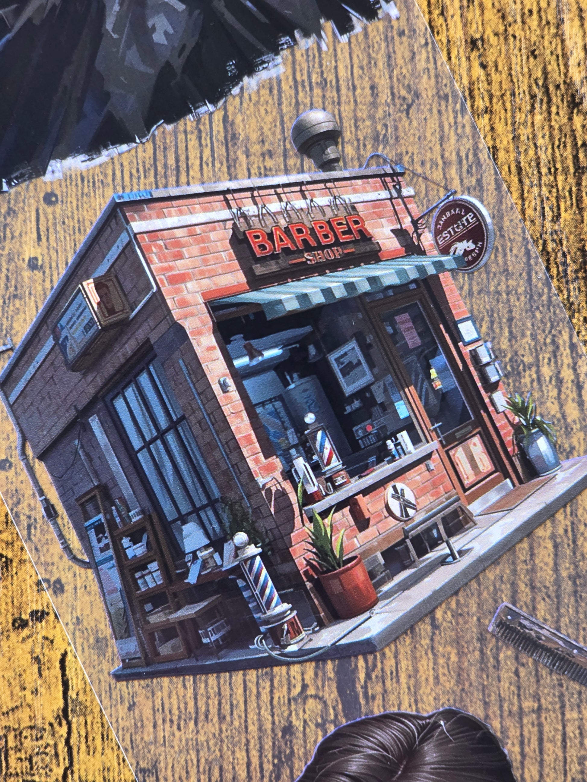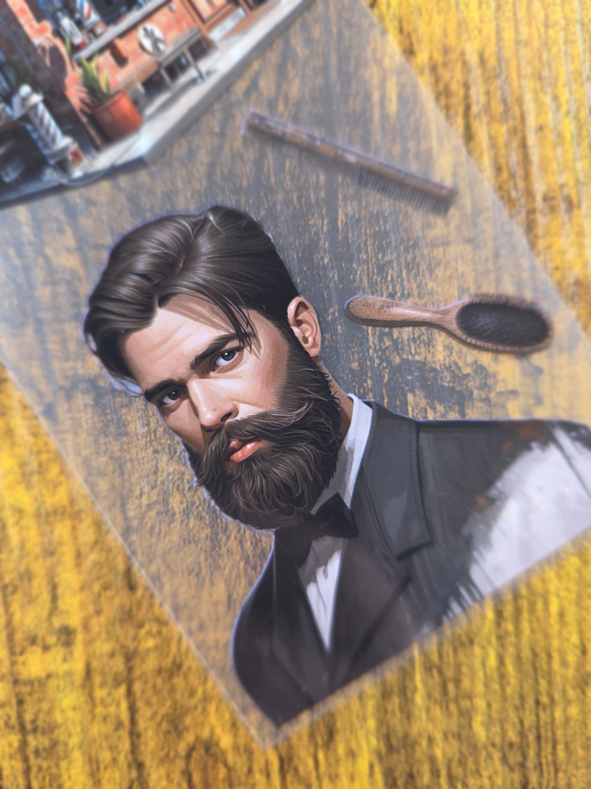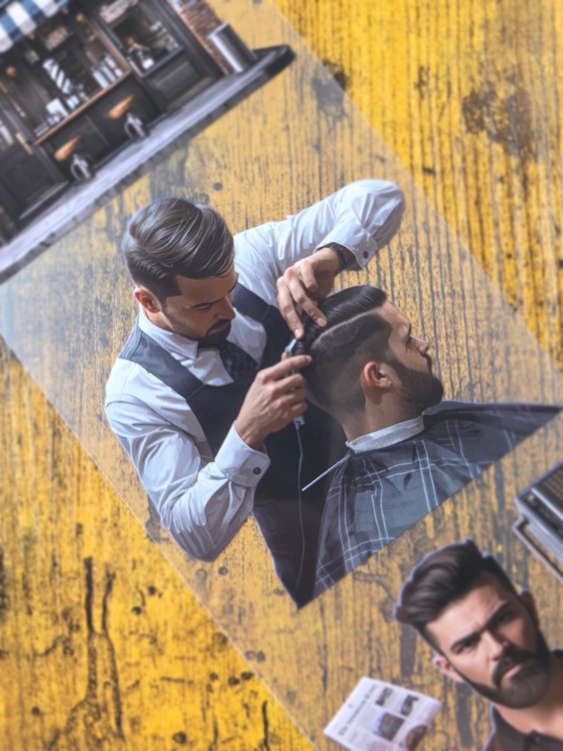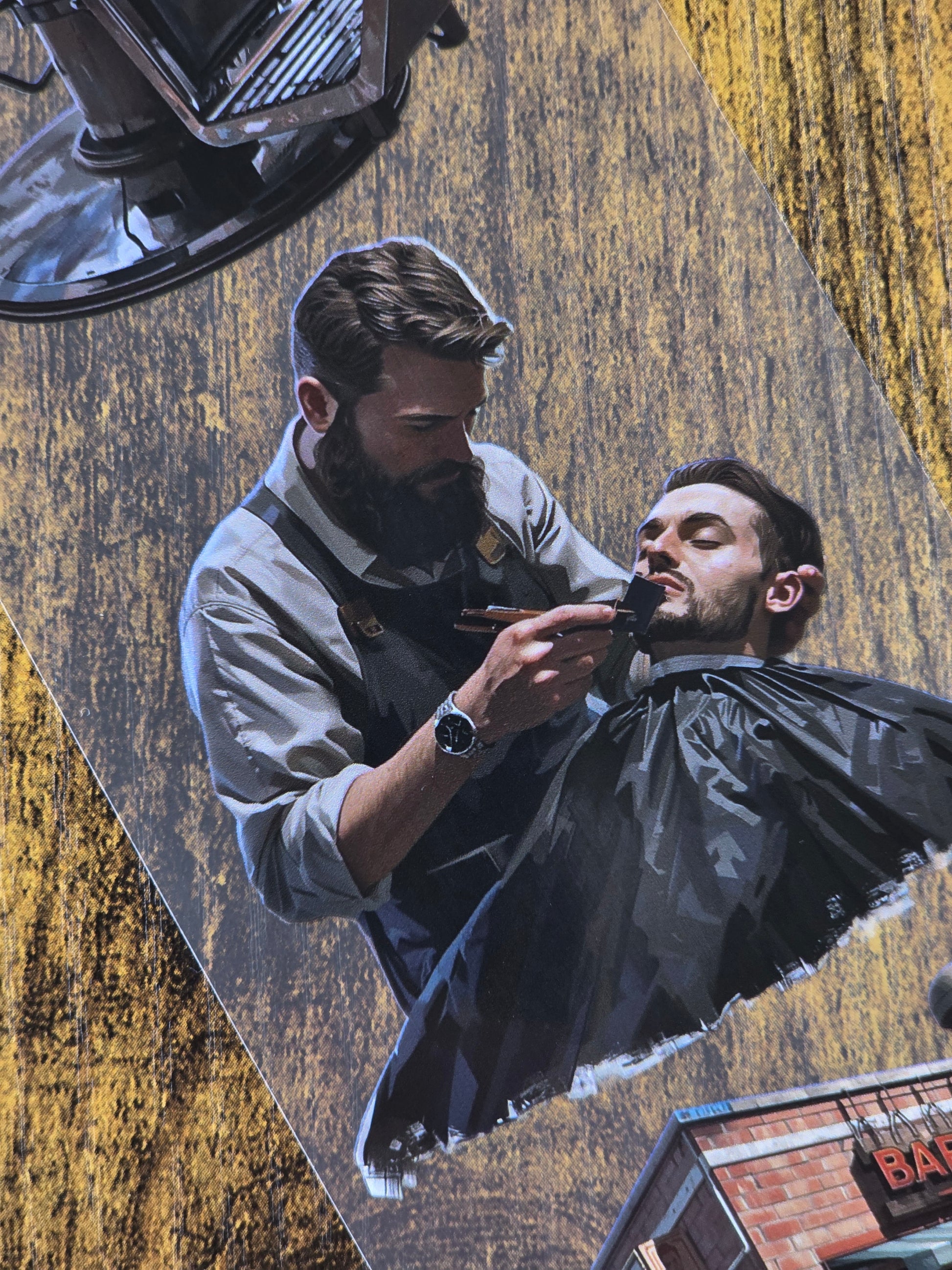 - Design: Barbershop-Motive (Rasierpinsel, Scheren, Kämme, Bartpflege, Vintage-Barber-Stühle)
