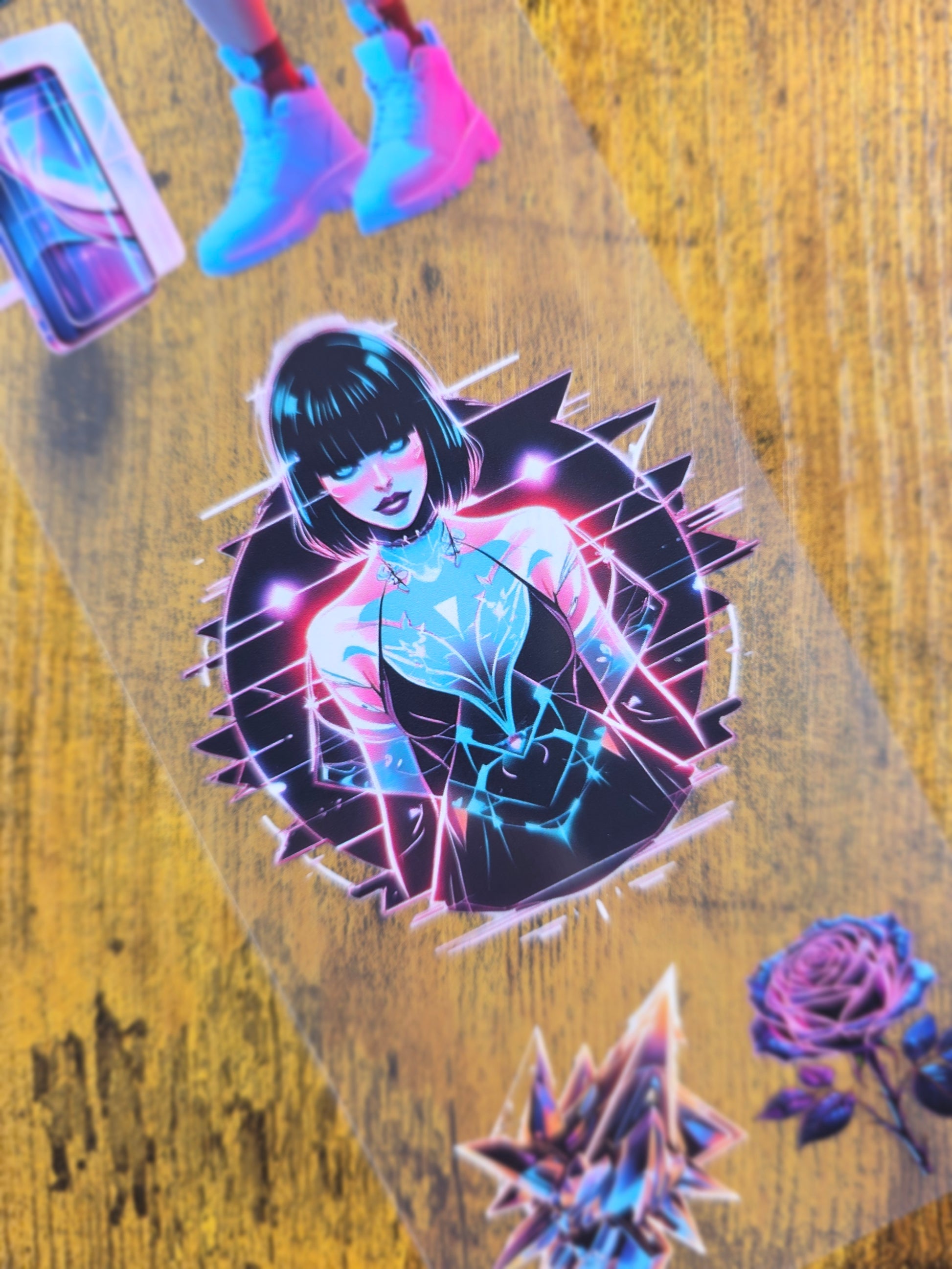 Dieses Stickerband entführt dich in eine Welt voller Neonlichter, flimmernder Hologramme und urbaner Rebellion. Zwischen Drohne, Datenströmen und Neonlicht findest du alles, was dein futuristisches Herz begehrt. Perfekt für alle, die ihre Projekte mit einem Hauch Dystopie, Tech-Ästhetik und Cyberstyle aufladen wollen.