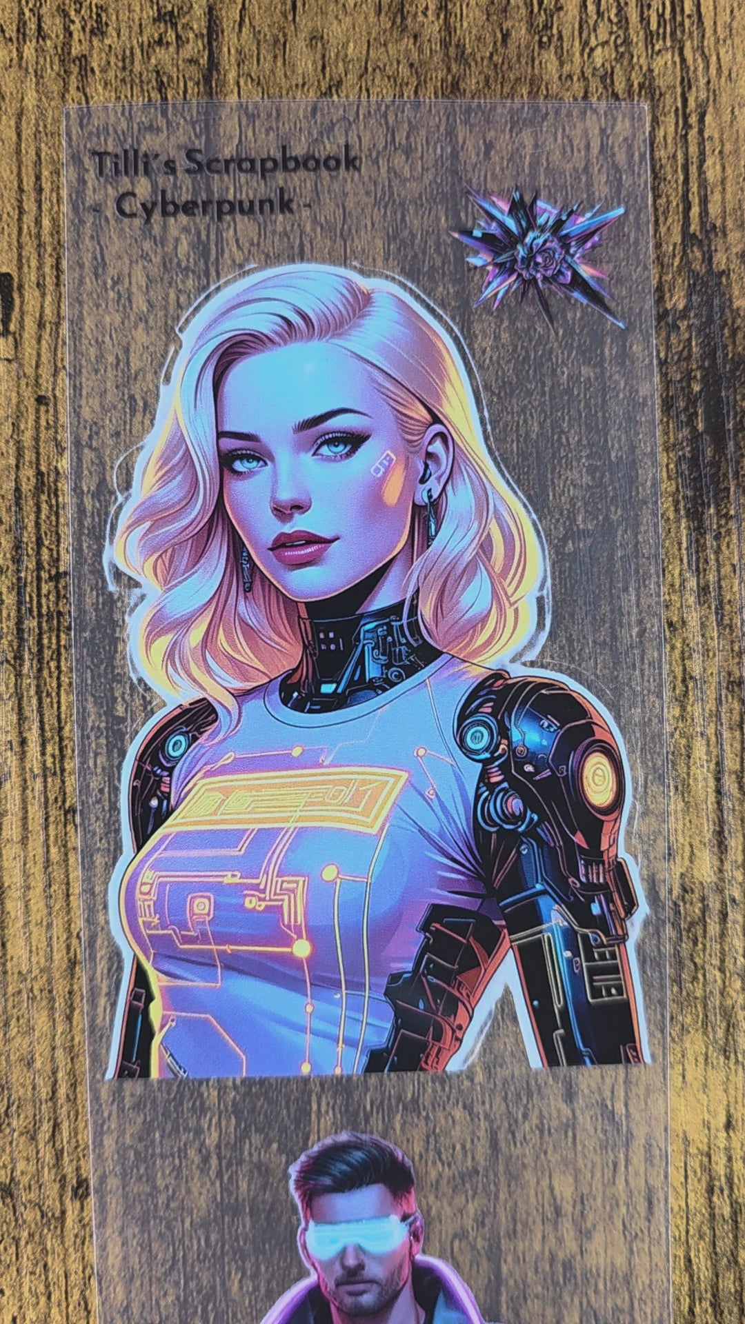 - Design: Cyberpunk-Motive (Androiden, Tech-Symbole, Hologramme)